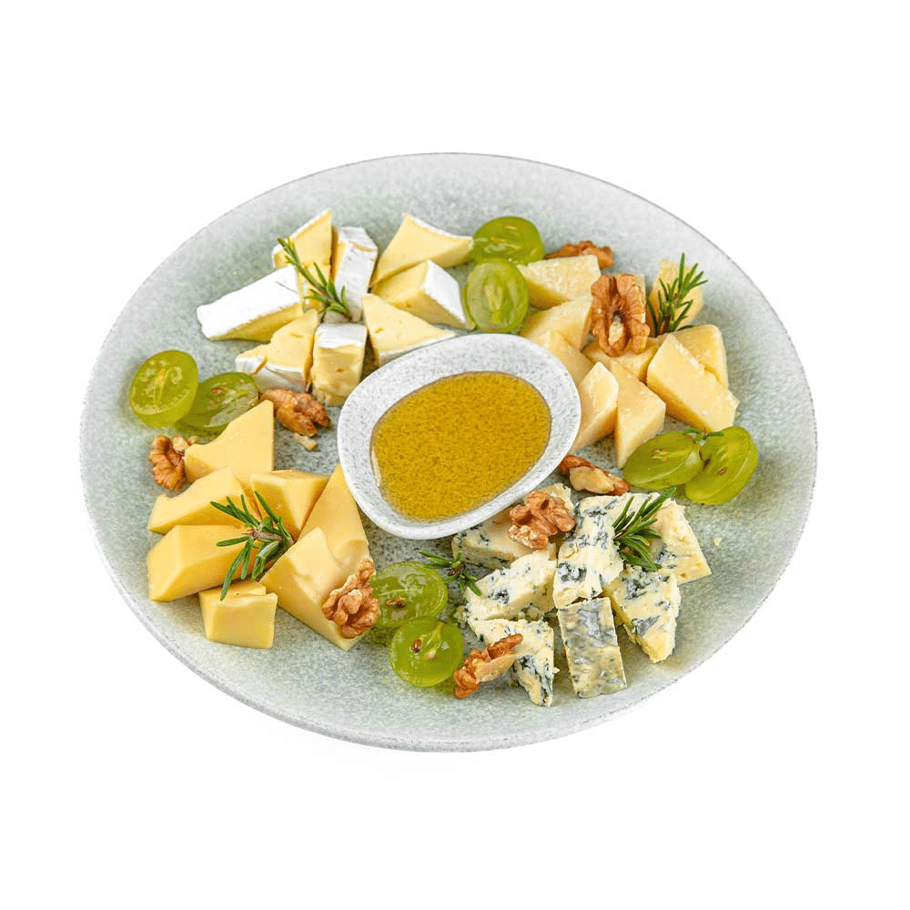 Brie, Grano Padano, Dor Blu, Сыр "3 молока", виноград, мёд и грецкие орехи