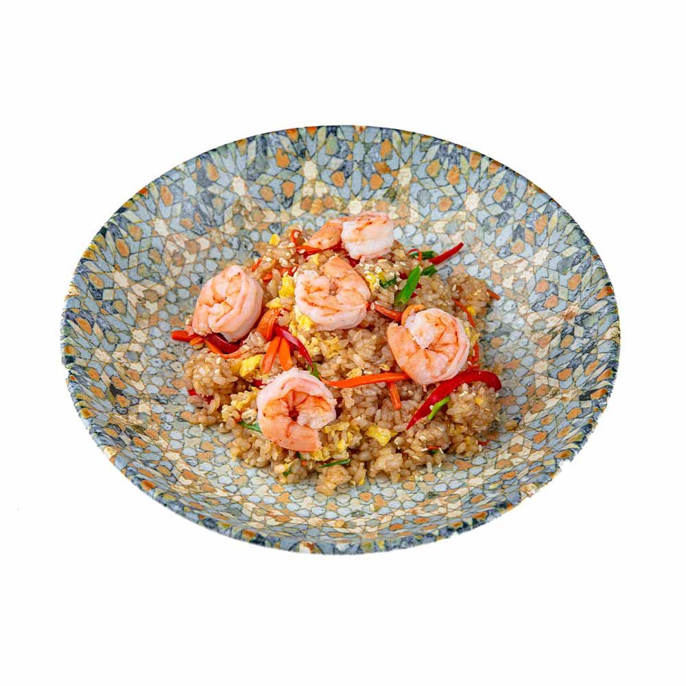 Рис с креветками, яйцом и свежими хрустящими овощами: болгарский перец, морковь, зеленый лук, дополняется гармоничным соусом WOK