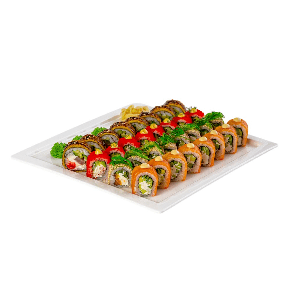 Ода японской классике: простые, чистые, но выразительные сочетания. Баланс в каждом кусочке. Сет из 4 роллов (Филадельфия, Зелёная Сакура, Калифорния с креветкой, Темпура с тунцом)