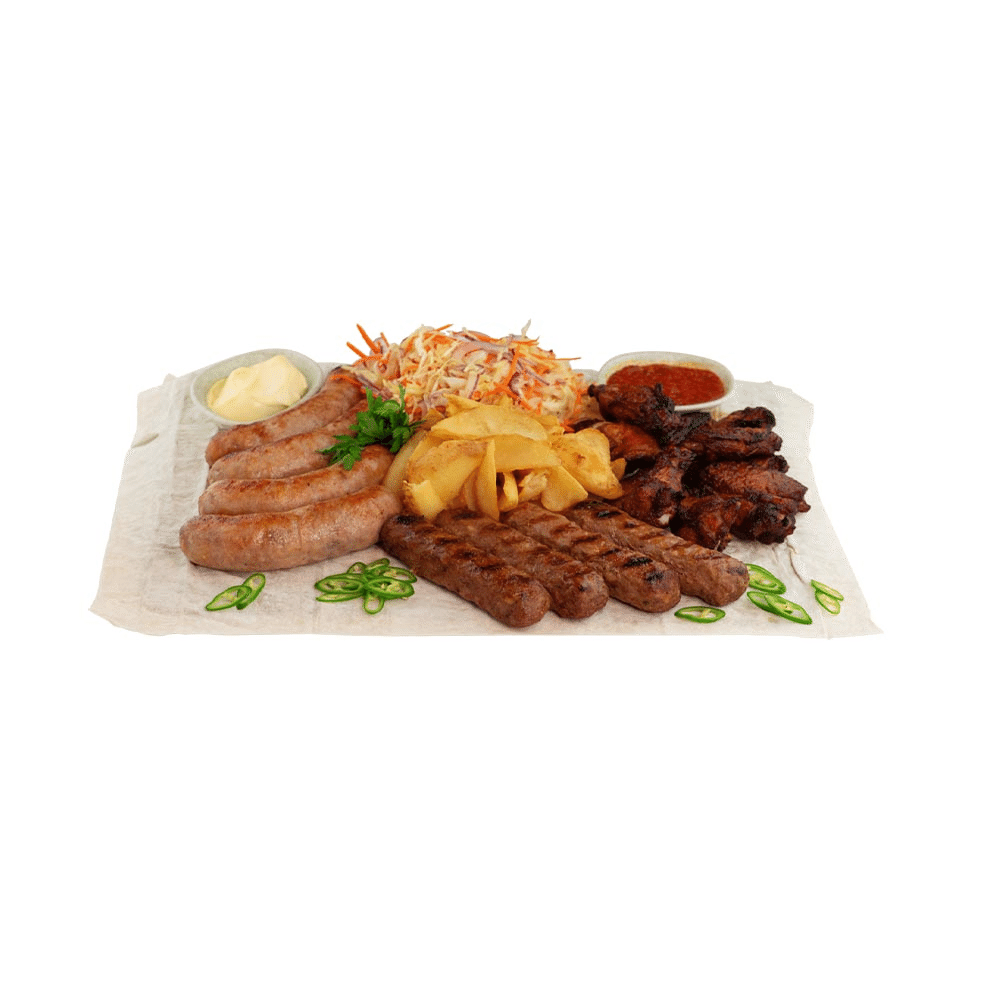 На лаваше, подаются: мититеи, карнацеи, маринованные куриные крылья