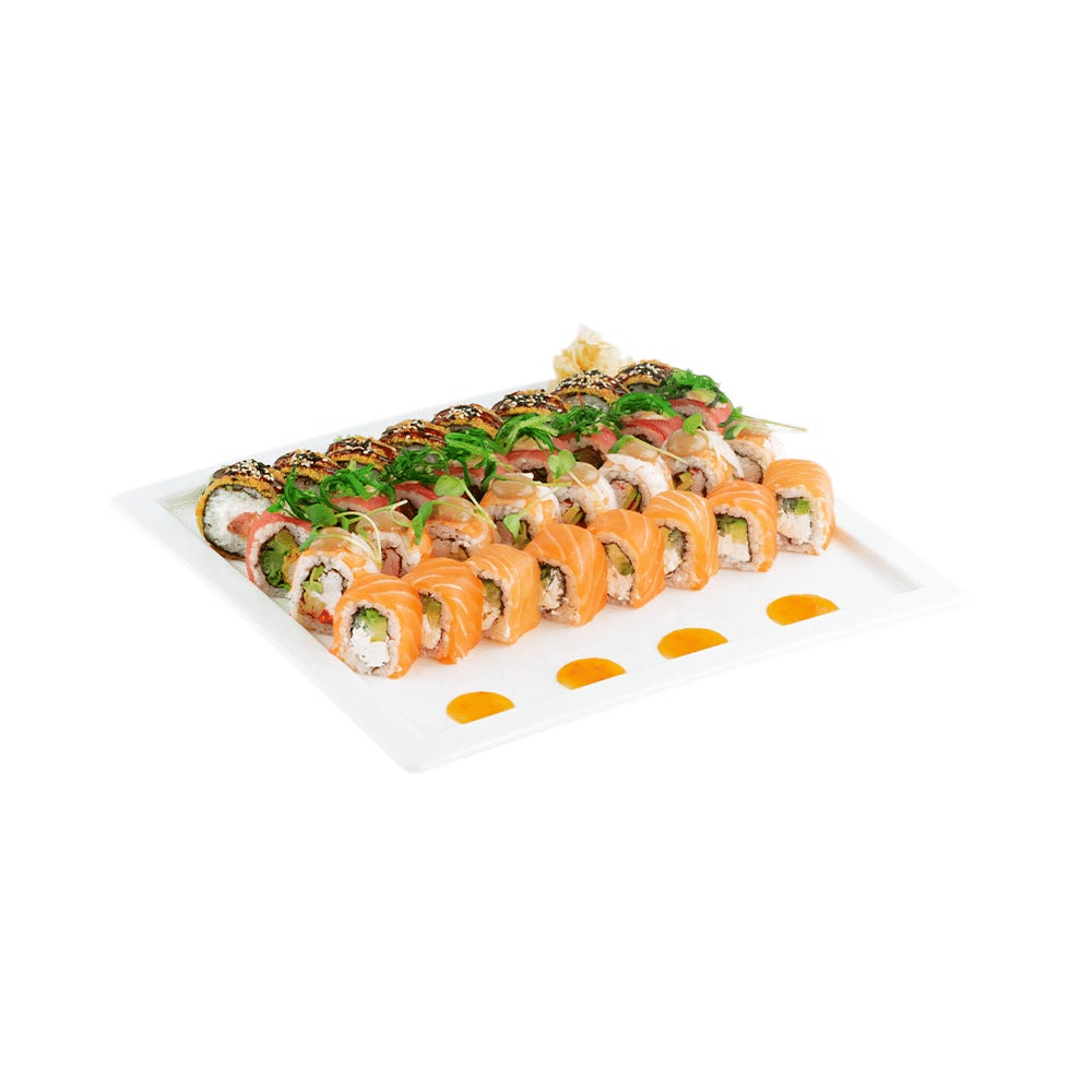 Cет из 4 роллов - «Филадельфия», «Ореховая креветка», «Тропикал кранч ролл», «Темпура с семгой»